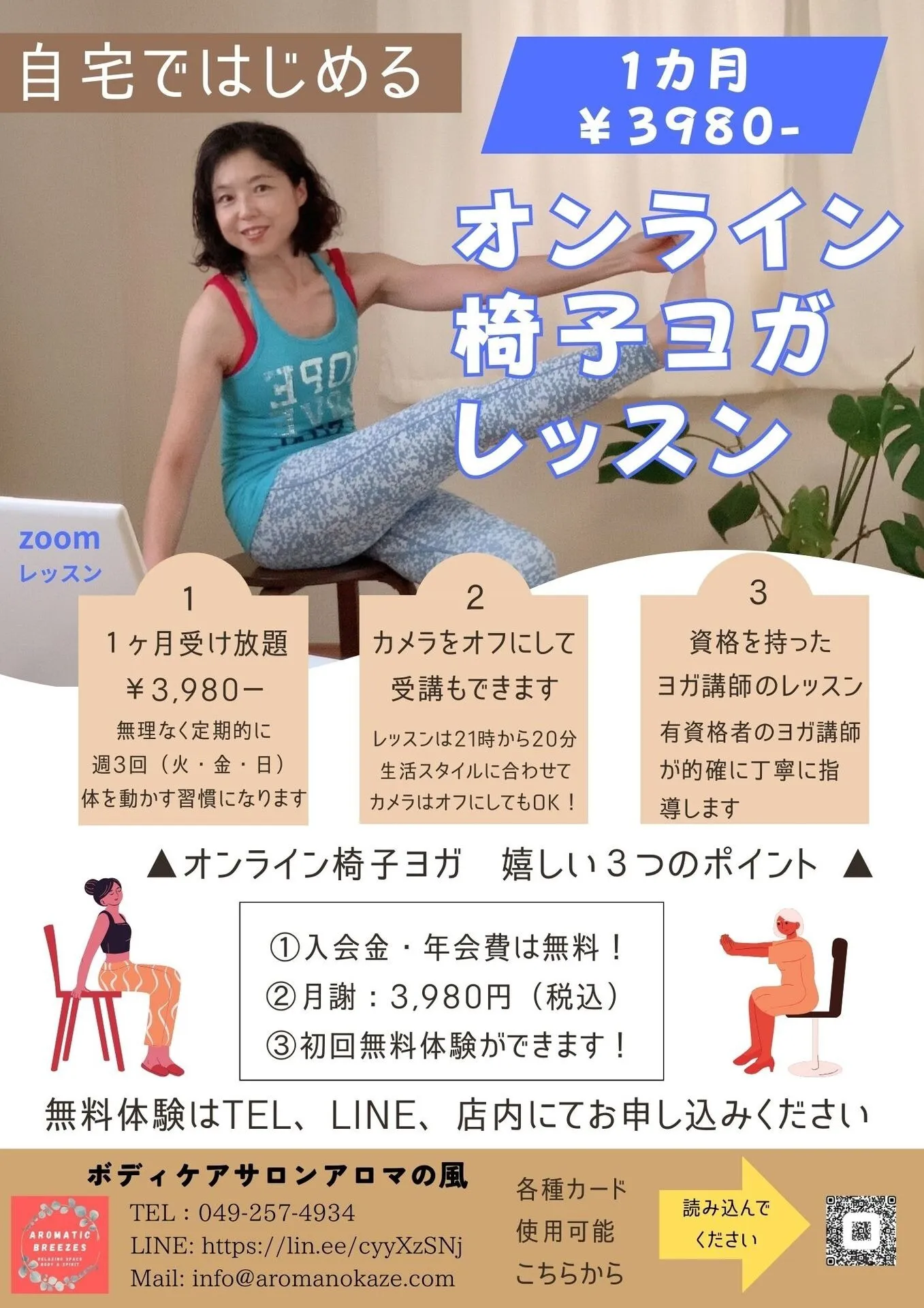 椅子ヨガオンラインレッスン1カ月3980円受け放題がスタート!